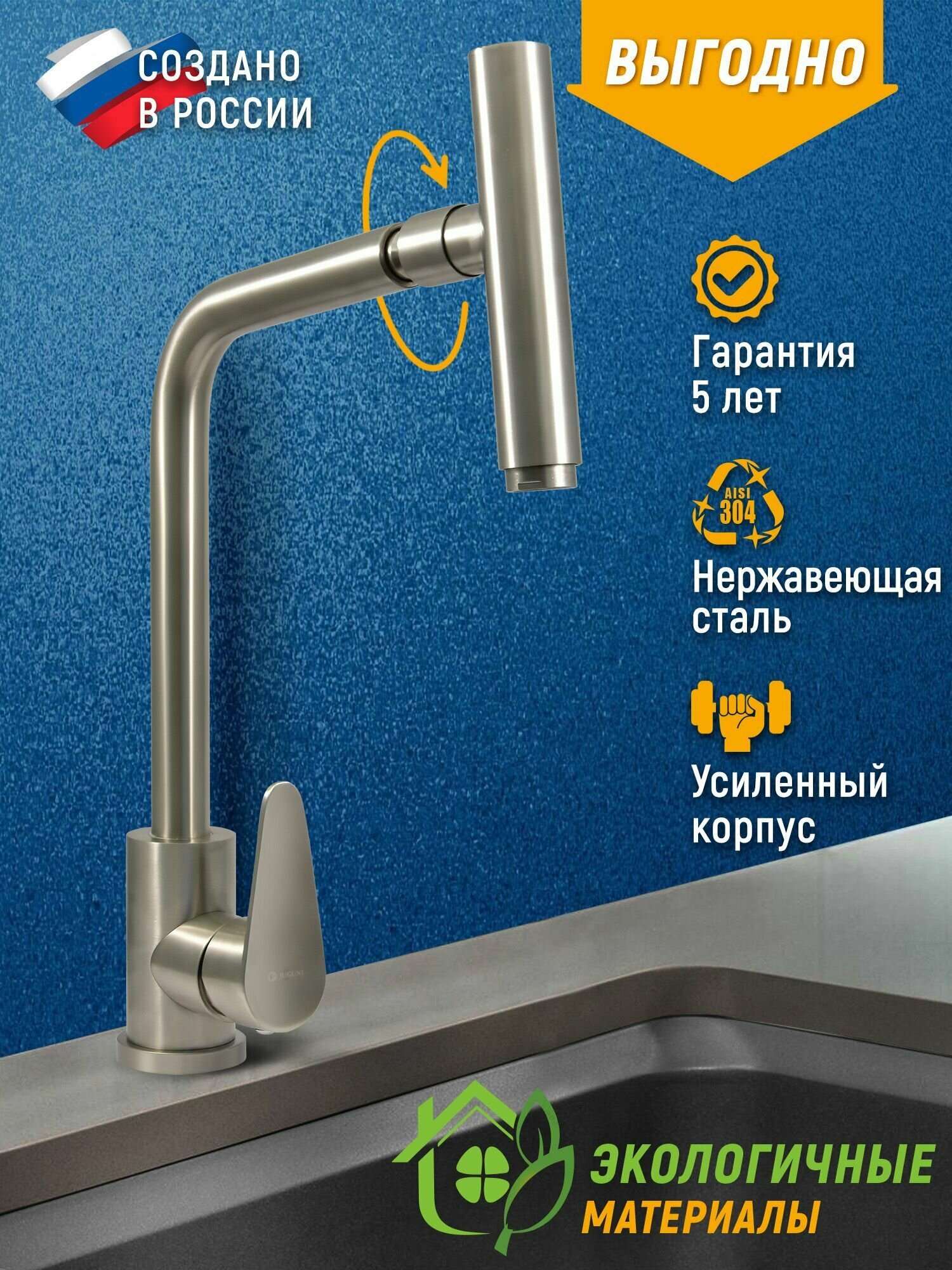 Смеситель для мойки с высоким изливом, вращающийся аэратор, нерж. сталь AISI304, Juguni, Арт.: 0402.169 интересное: