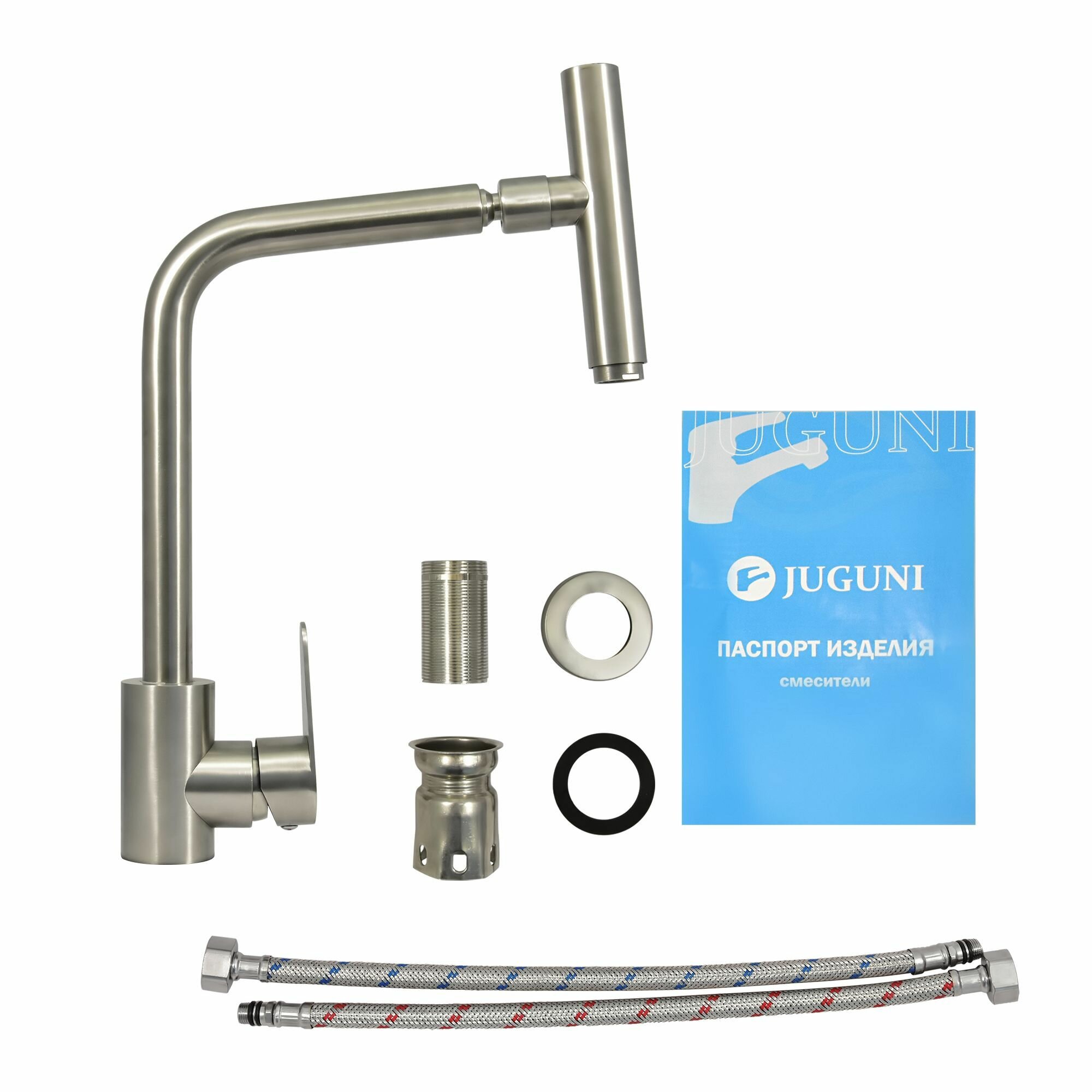 Смеситель для мойки с высоким изливом, вращающийся аэратор, нерж. сталь AISI304, Juguni, 0402.169