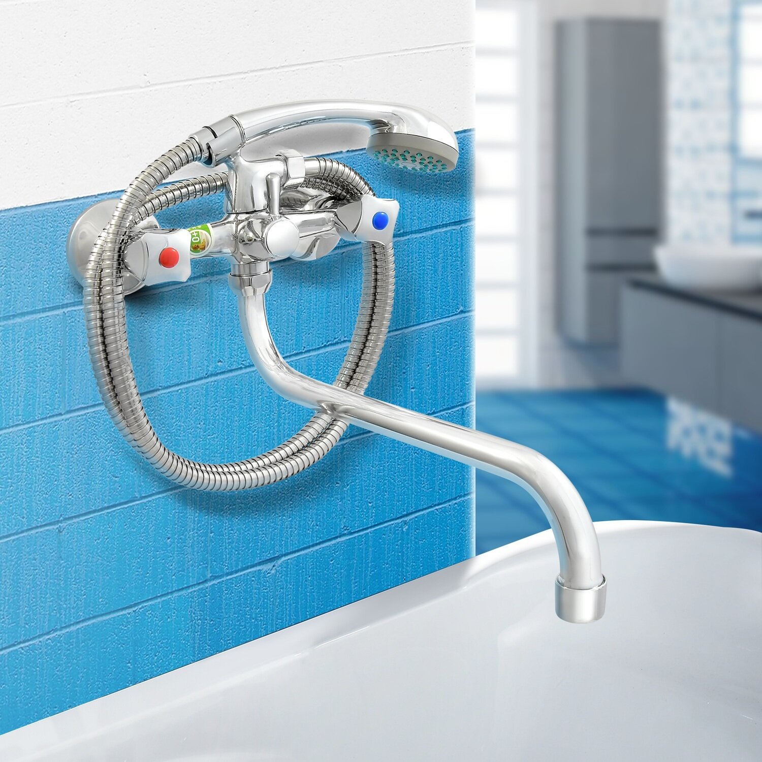 Ванно-душевой смеситель Juguni двуручный, со шлангом и хромированной лейкой JGN0130, кран-бук 0402.642