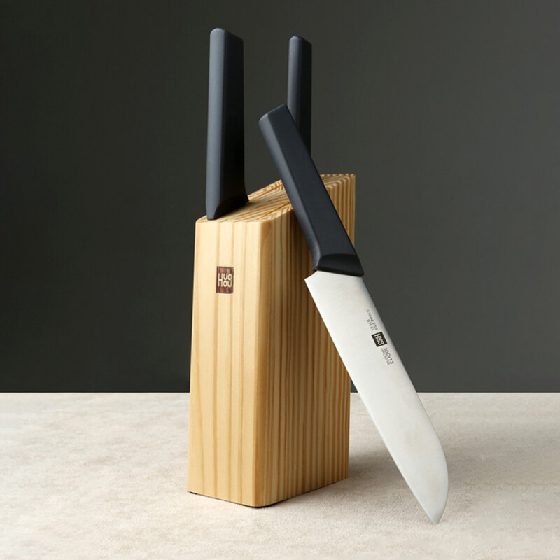 Набор стальных ножей (3 ножа + деревянная подставка из сосны) HuoHou 4-Piece Kitchen Knife Set Lite .