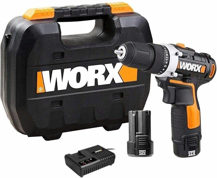 Аккумуляторная дрель-шуруповерт WORX WX128.3 12В - 2,0Ач х2, ЗУ 1,5А, с кейсом