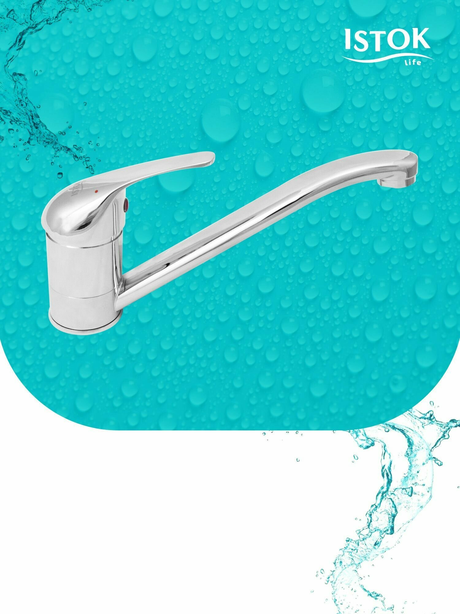 Латунный смеситель для мойки одноручный Istok life с поворотным изливом 25 см, 40 карт., шпилька