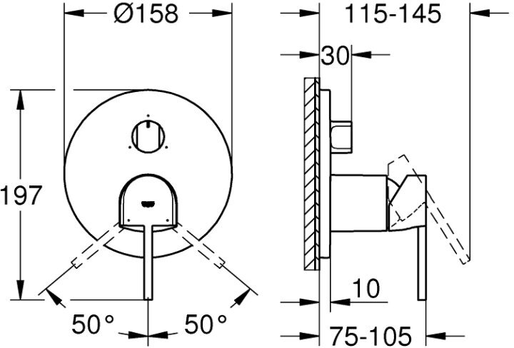 Лицевая часть встраиваемого смесителя Grohe Plus, арт. 24093003, 3 функции