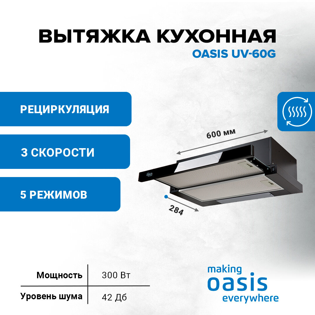 СохранитьВытяжка встраиваемая OASIS UV-60G интересное: