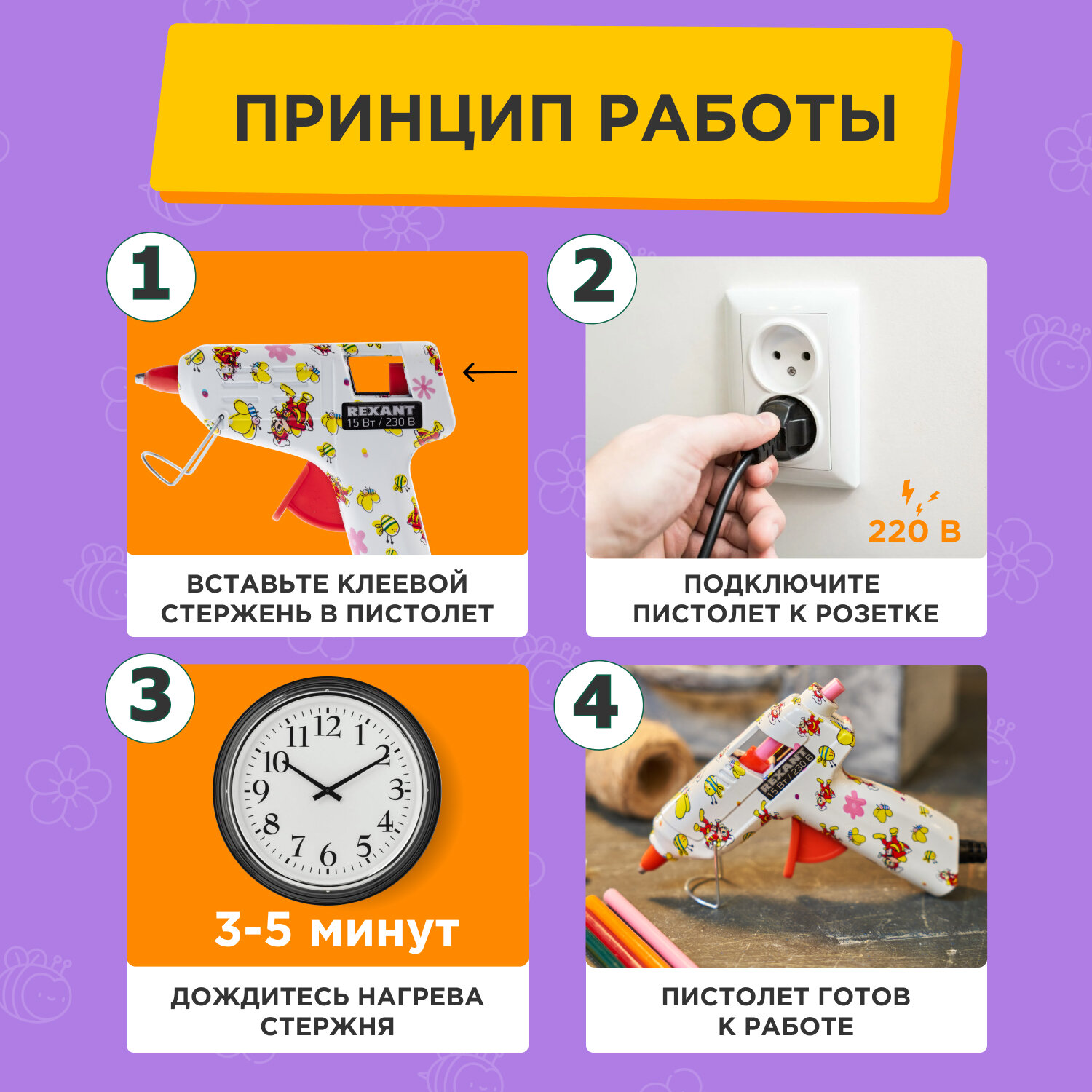 СохранитьПистолет клеевой Rexant, 15 Вт, O7 мм + набор цветных стержней 12 шт, блистер 12-0112 . интересное: