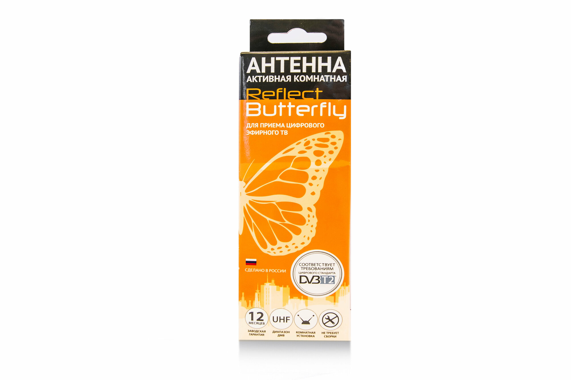 Телевизионная антенна Reflect BUTTERFLY 5V (активная, DVB-T2, без б/п, 33 дБ, коробка)