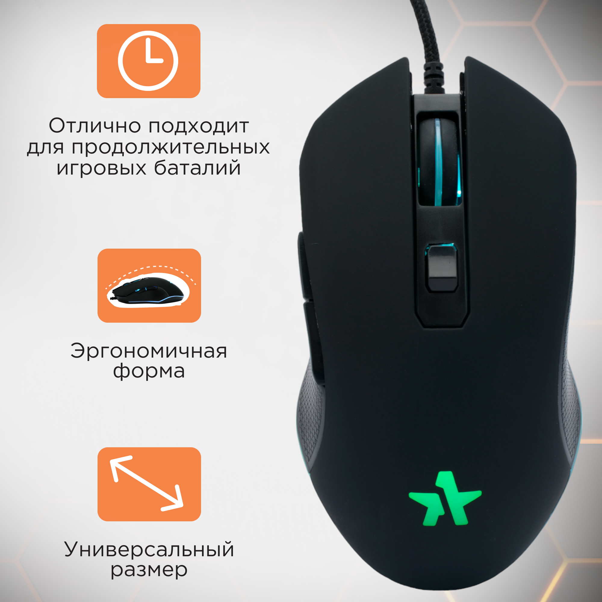 Мышь игровая Гарнизон GM-780G, черный, 2400 DPI, 6 кн, RGB, soft touch, кабель 1,5 м интересное: