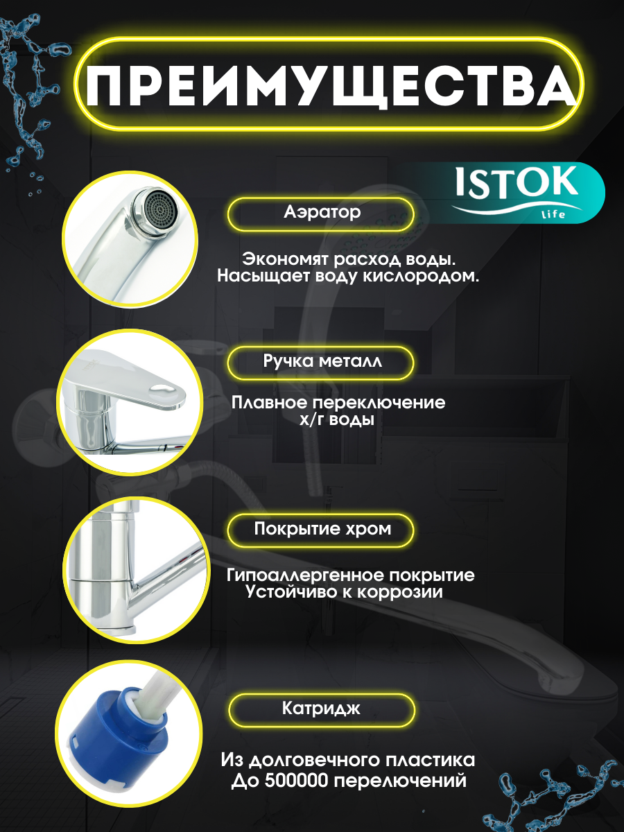 Смеситель для раковины Istok life Standard 0402.718, однорычажный, хром интересное: