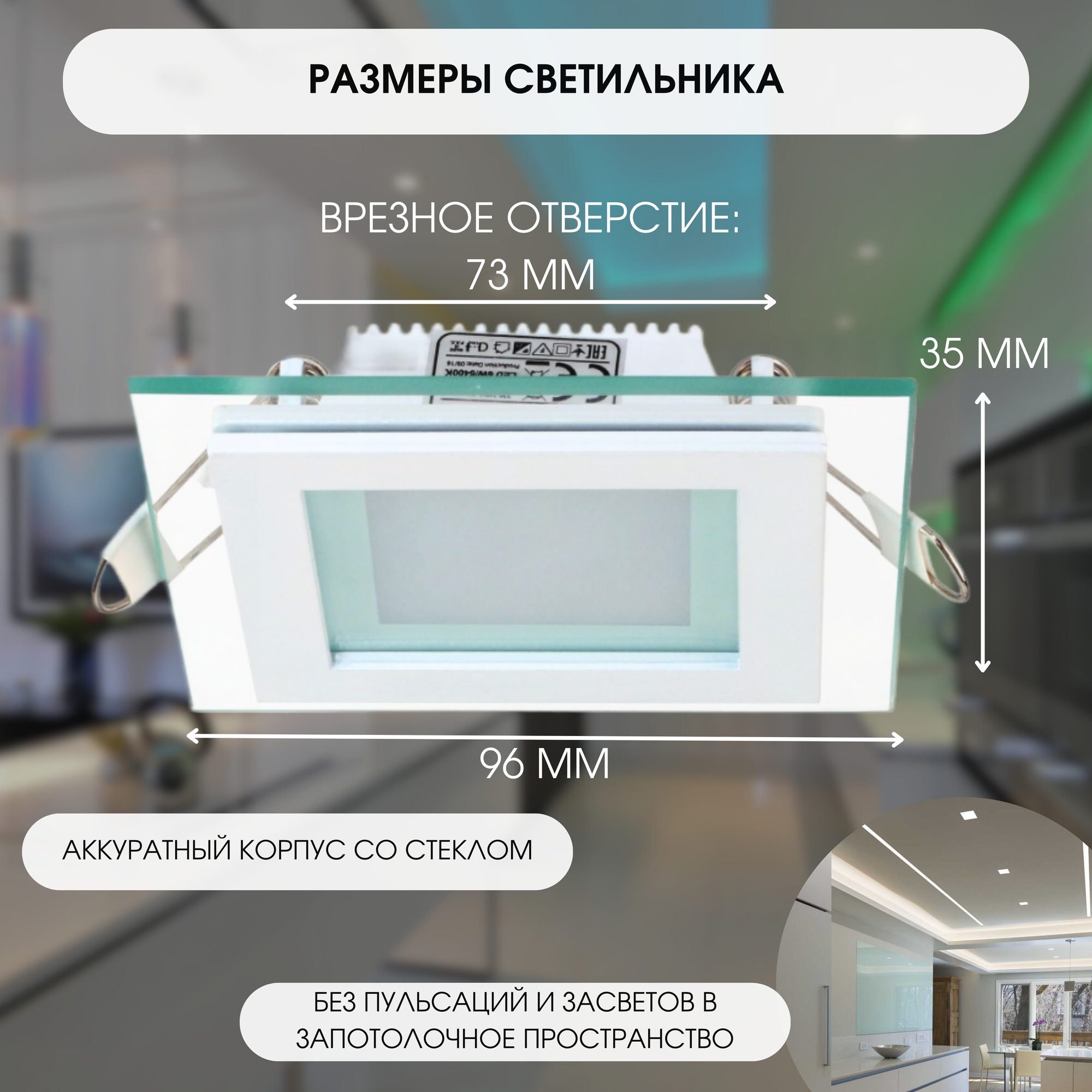 Светильник LED 12Вт 4200К белый встраив. стекло Квадрат HL685LG Horoz 016-015-0012
