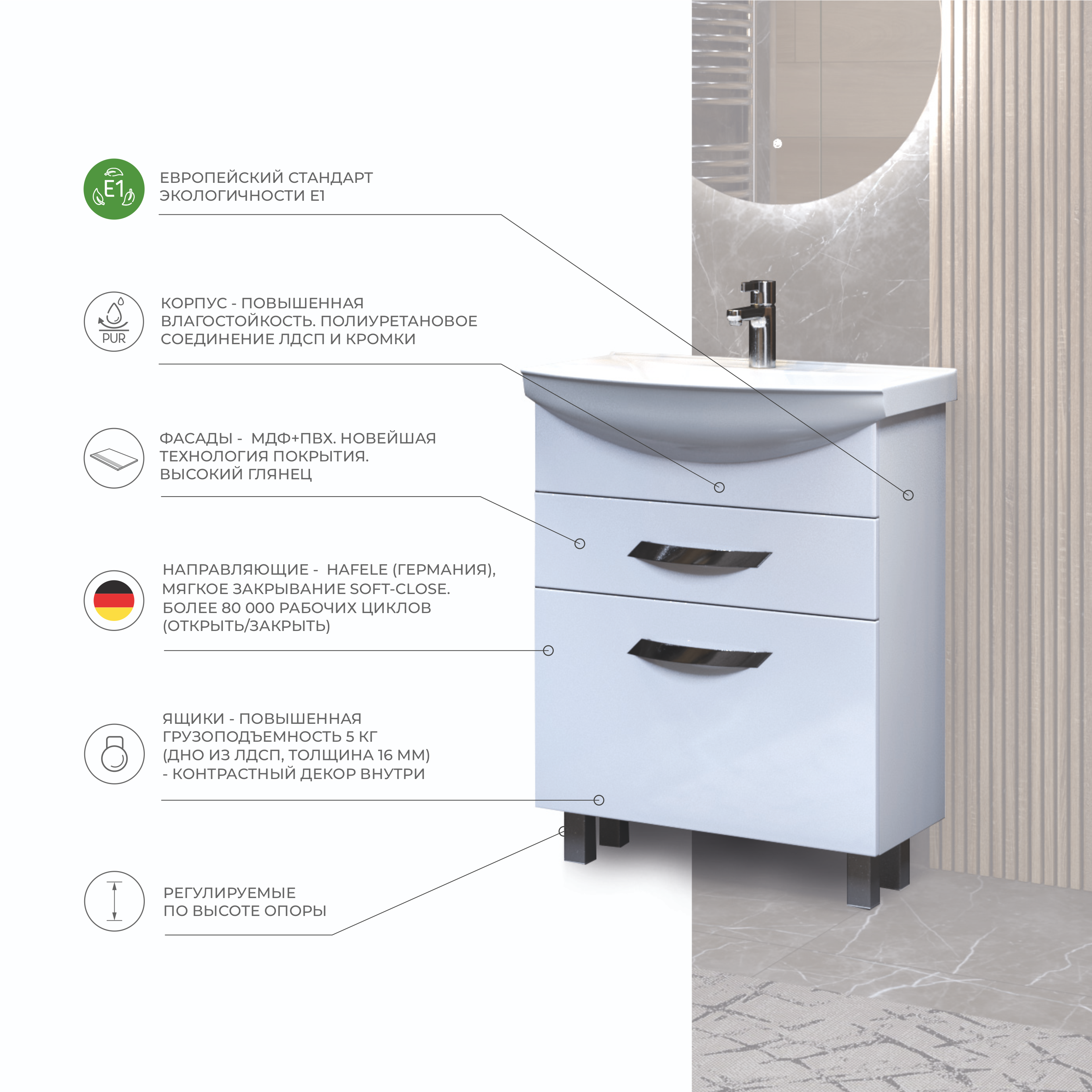 Тумба под раковину Vigo Moss 65 см, цвет белый интересное: