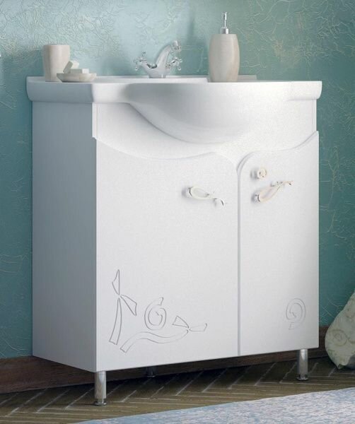 Тумба под раковину в ванную Flamenco, Фламенко 504, белая, 47 х 28.2 x 81 см мебель для ванной