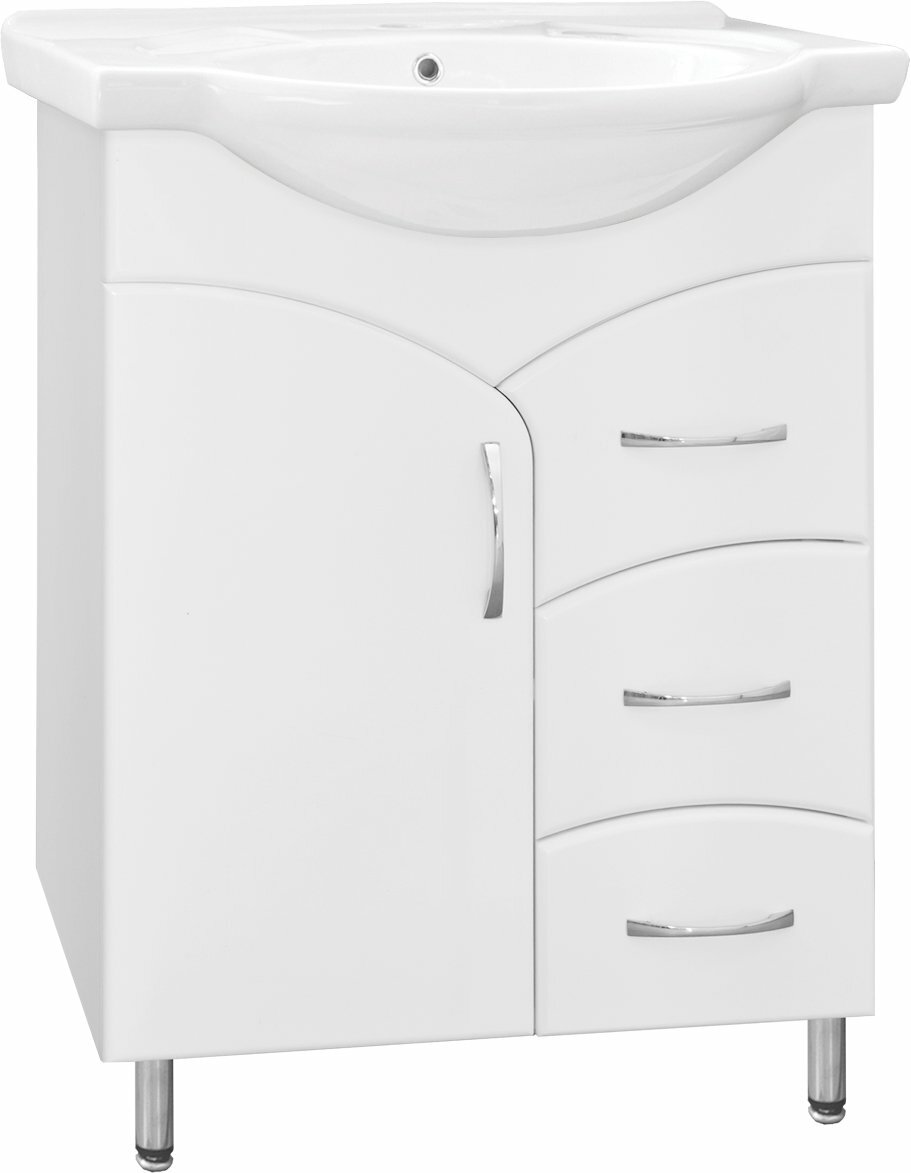 Тумба с раковиной Style Line Эко Стандарт 22 (3 ящ.) + Умывальник Байкал 65 Белый