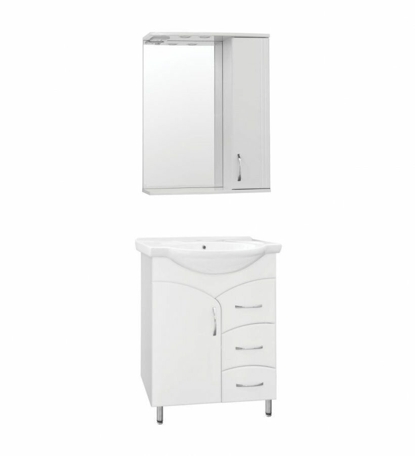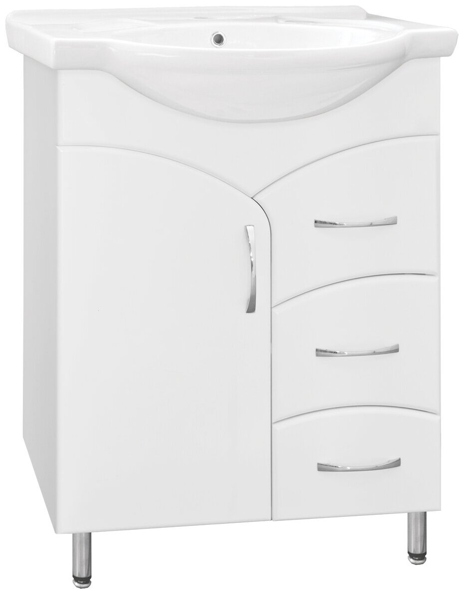 Тумба с раковиной Style Line Эко Стандарт 22 (3 ящ.) + Умывальник Байкал 65 Белый