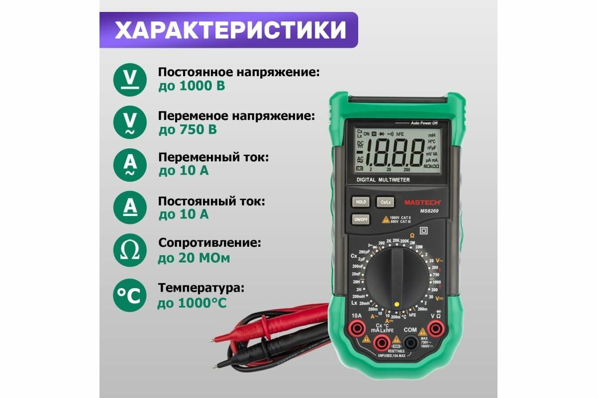 Мультиметр цифровой автоматический MASTECH Мastechс MS8360E, возможность измерения емкости и индуктивности