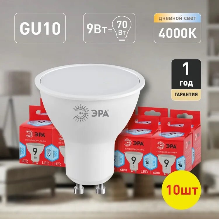 Лампа светодиодная для бытовой техники ЭРА Б0050692, GU10, GU10, 9 Вт, 4000 К
