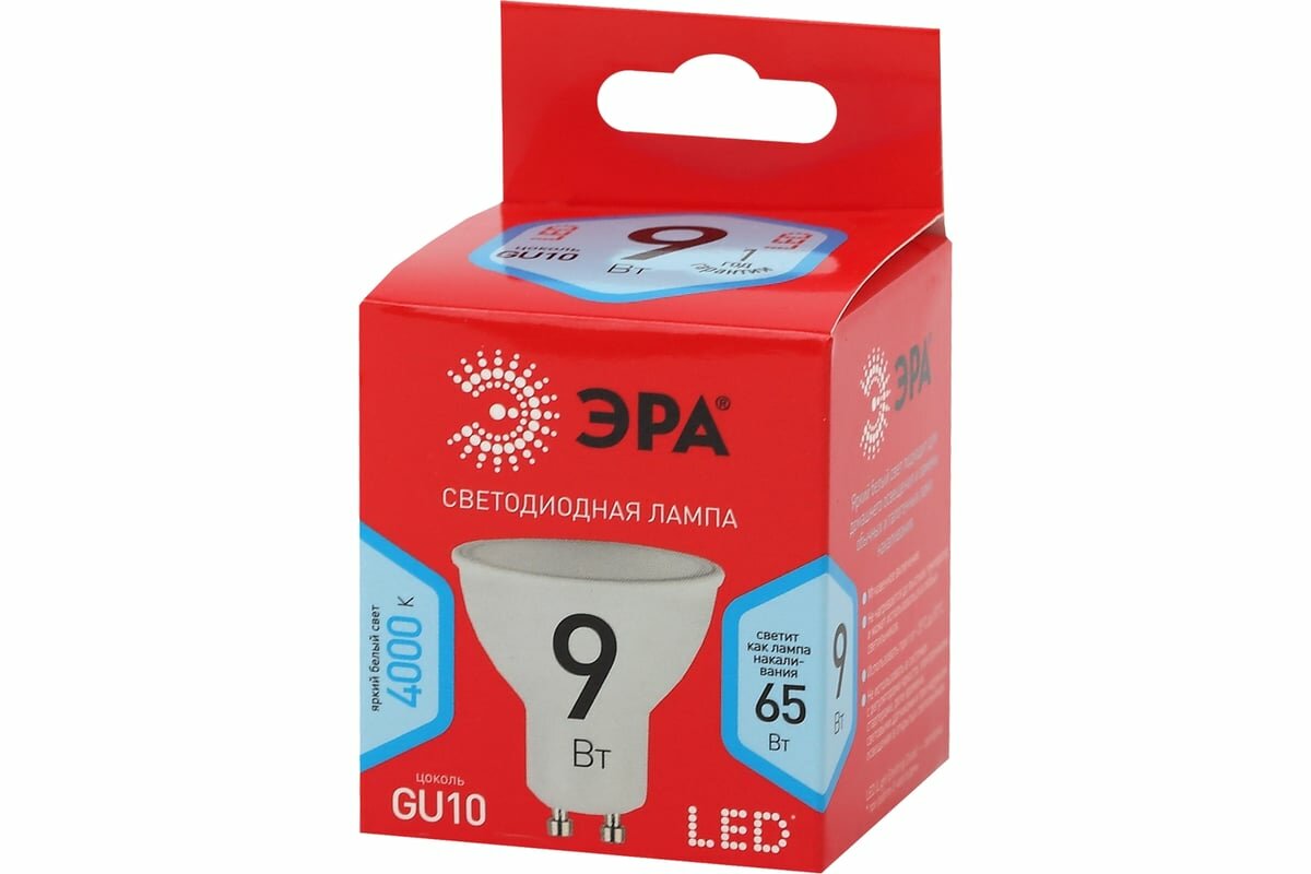 ЭРА Лампочка светодиодная ЭРА RED LINE LED MR16-9W-840-GU10 R GU10 9 Вт софит нейтральный белый свет