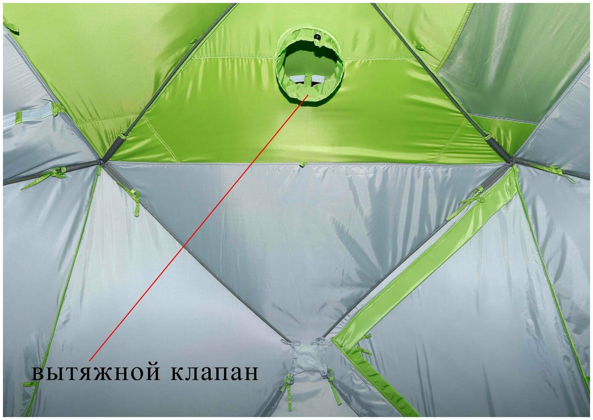 | Дополнительная информация | трехслойный тент: внешний слой - ткань полиэстер Оксфорд 240D WR (135 г/м²), средний - нетканый утеплитель (200 г/м²), внутренний - ткань полиэстер Оксфорд 210D (100 г/м²); объем: 5.7 м³ |