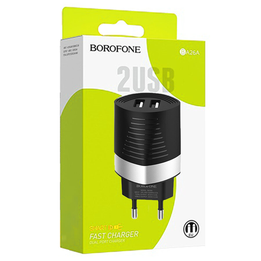 Зарядное устройство BOROFONE BA26A Mighty 2*USB, 2.4A, черный интересное: