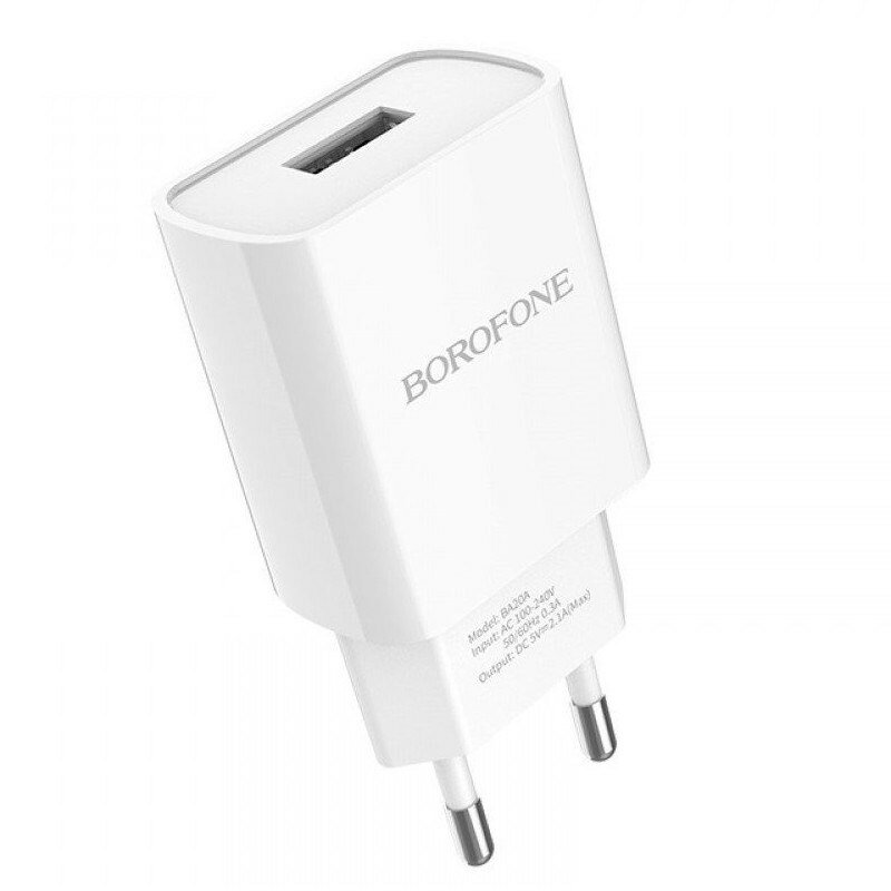 Сетевое зарядное устройство Borofone Ba20a, 1 Usb, 2.1 А, белое Borofone 9236958