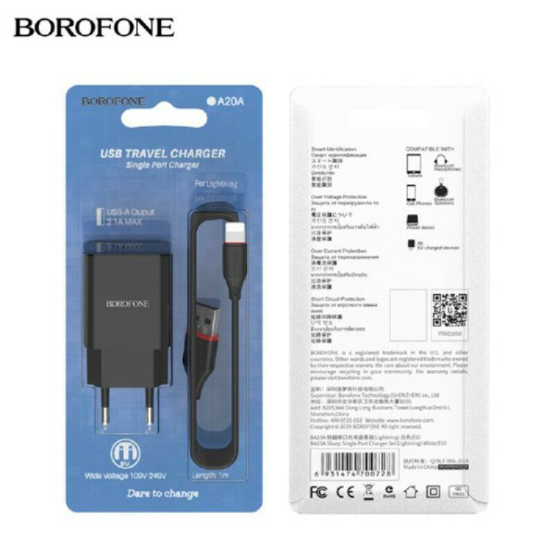 Сетевое зарядное устройство USB Borofone BA20A (2.1A + кабель Lightning) <черный>