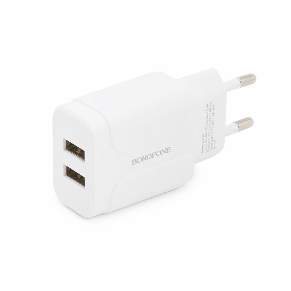 Сетевое зарядное устройство 2USB 2.4A для micro USB Borofone BA37A 1м White