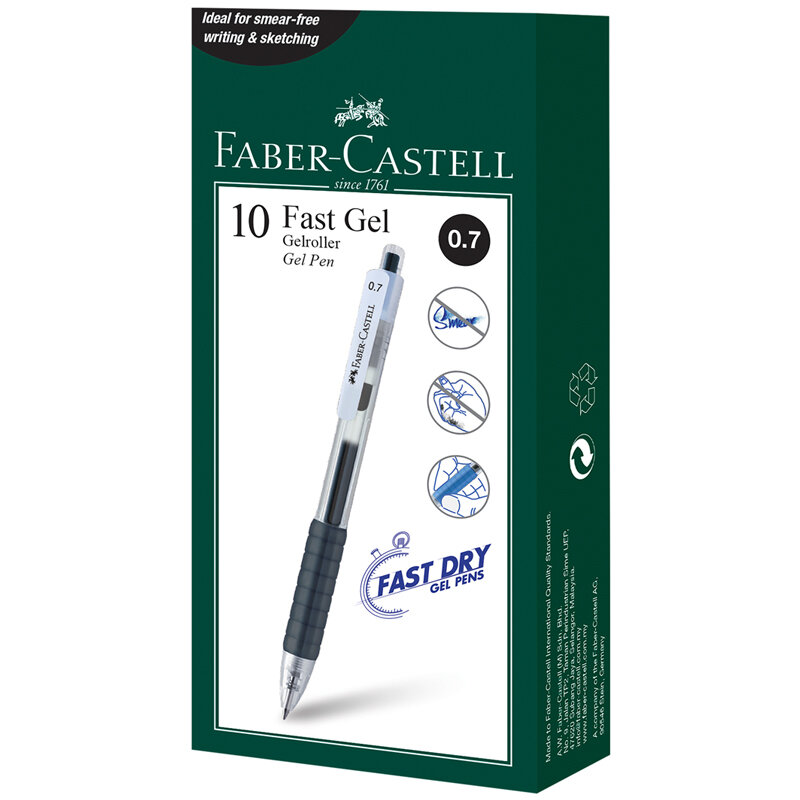 Купить Ручка гелевая автоматическая Faber-Castell "Fast Gel", черная, 0,7мм, грип, 10 шт. в упаковке