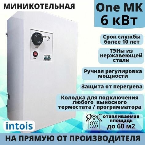 Электрический котел отопления, электрокотел Интоис One МК, 6 кВт, настенный, одноконтурный. интересное: