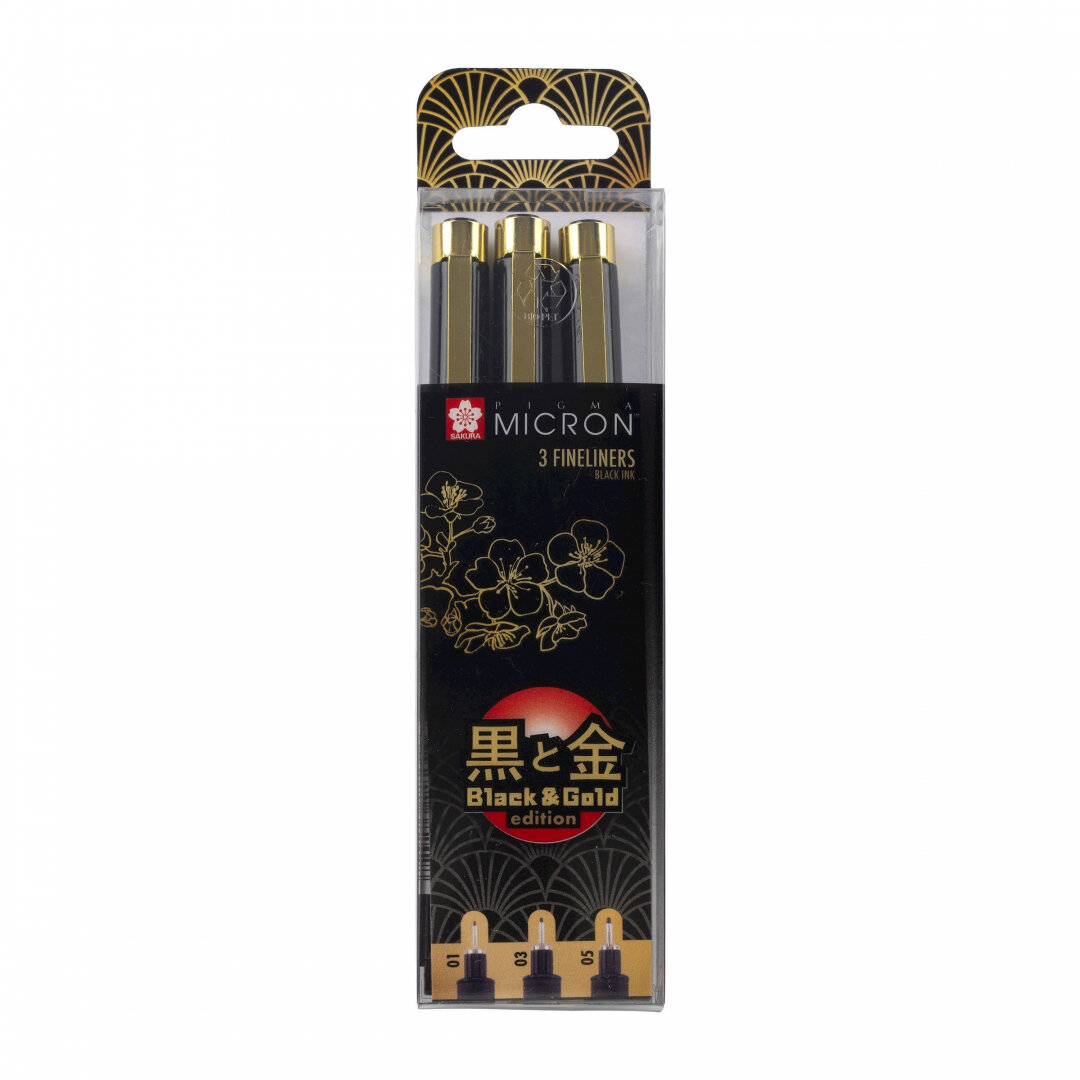 Купить Sakura Набор капиллярных ручек "Pigma Black & Gold" лимитированный, 3шт (01, 03, 05), черный