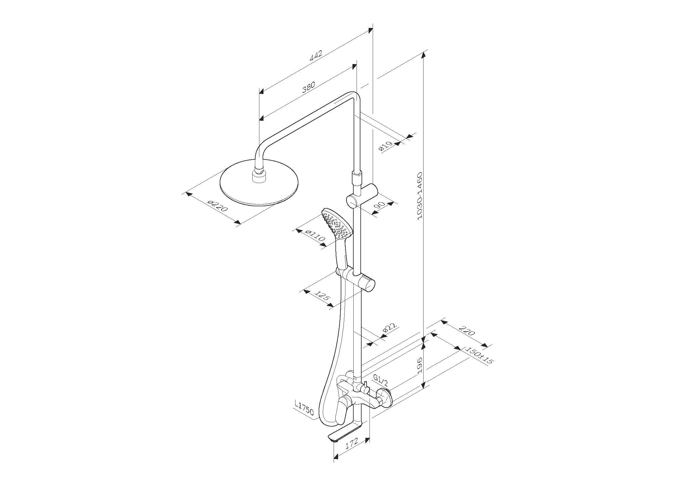 | Дополнительная информация | диаметр верхнего душа 22 см; диаметр лейки 11 см |