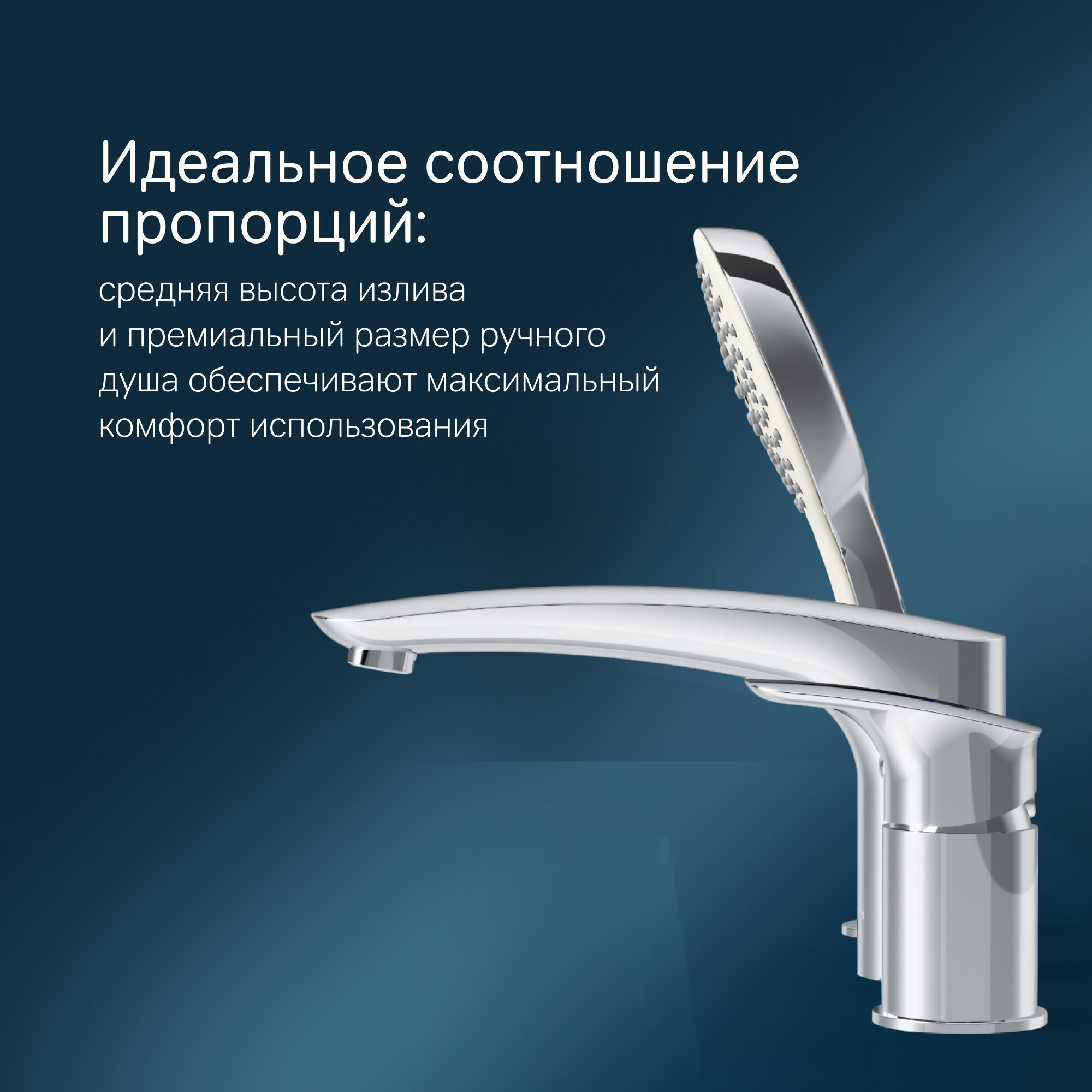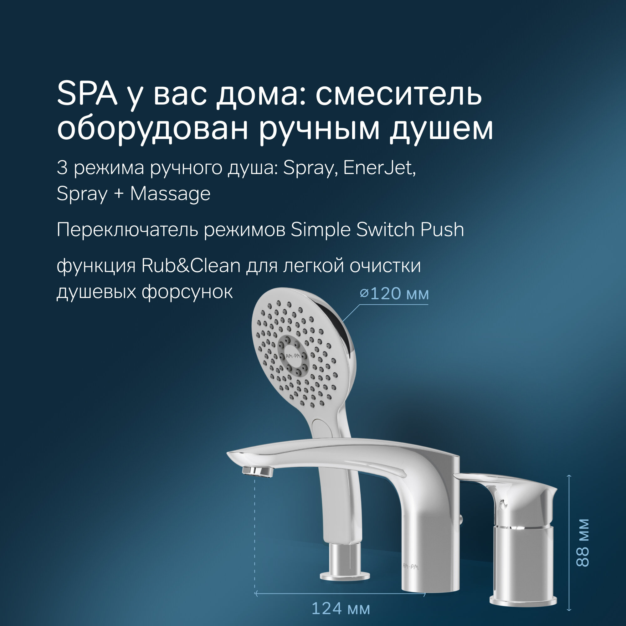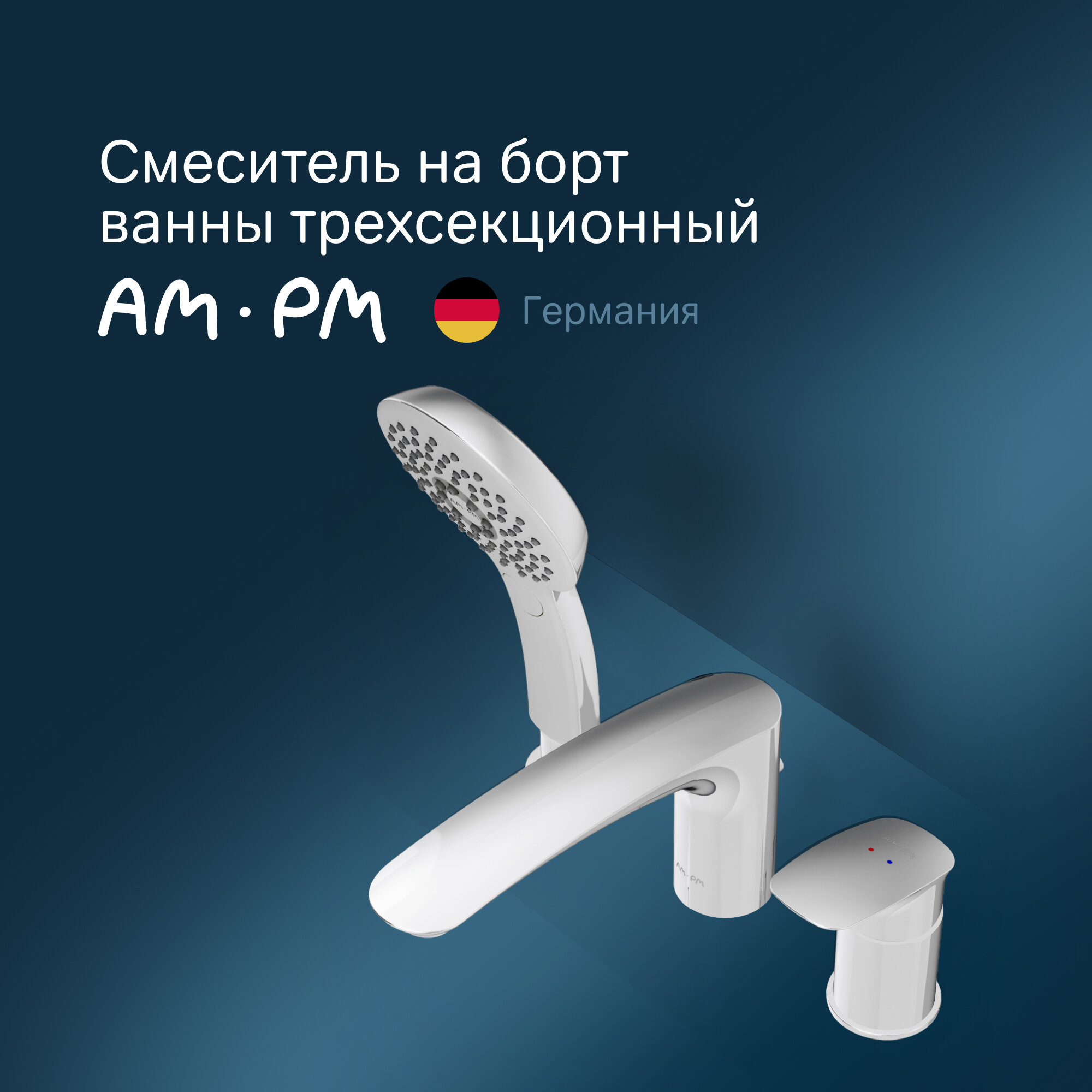 Смеситель на борт ванны AM.PM Inspire V2.0 F50A01300 трехсекционный, лейка с тремя режимами и поверхностью soft touch