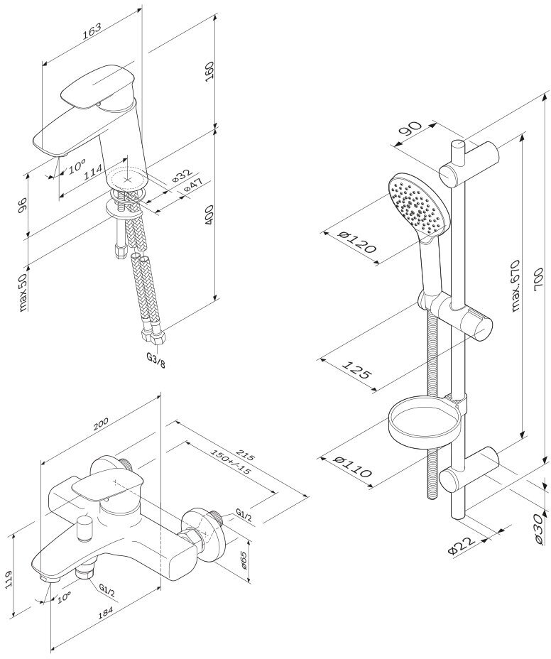 Am.Pm F40971A00 Spirit V2.1, набор 3в1: см-ль д/умывальника, см-ль д/ванны/душа, душевой комплект, шт.