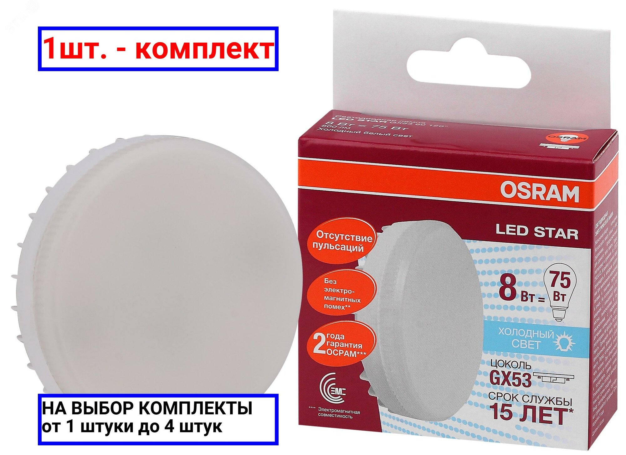 Лампочка светодиодная OSRAM LED Star GX, 800лм, 8Вт, 2700К (теплый белый свет), цоколь GX53, колба GX, таблетка