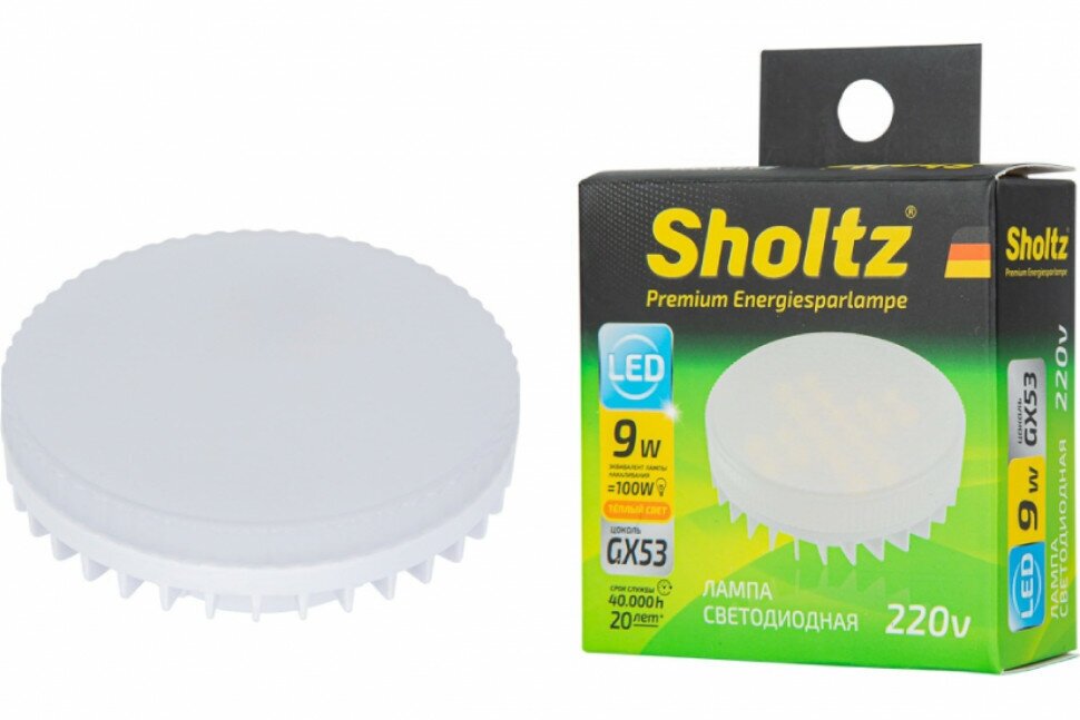 Светодиодная лампа Sholtz шайба 9Вт GX53 2700К 220-240В пластик интересное: