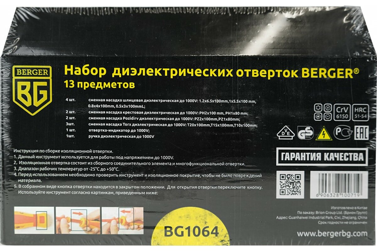 Berger BG Набор отверток диэлектрических до 1000V 13 предметов Berger BG1064 .