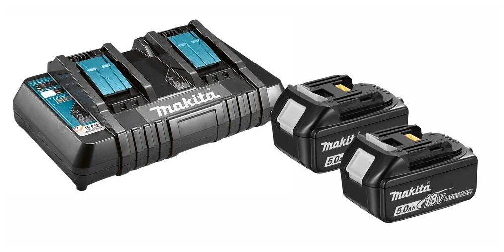 | Дополнительная информация | в комплекте: зарядное устройство DC18RD - 1шт, аккумулятор BL1850B - 2шт; время заряда 45 минут |