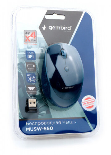 Мышь беспроводная Gembird MUSW-550-1, 1600 DPI, 6кн,, 2.4ГГц + BT синяя
