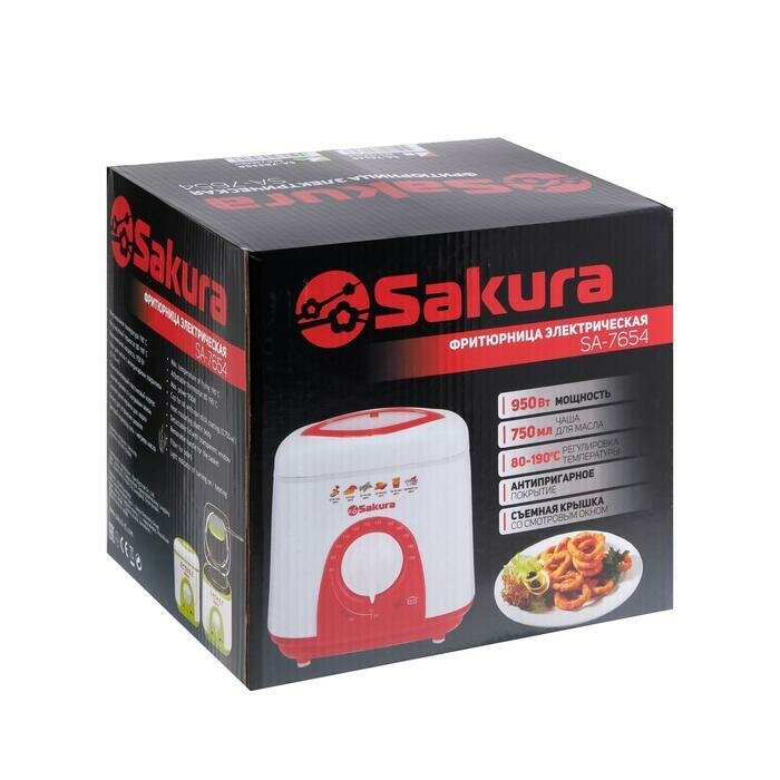 SAKURA Фритюрница Sakura SA-7654R, 950 Вт, 750 мл, антипригарное покрытие, фильтр, бело-красная