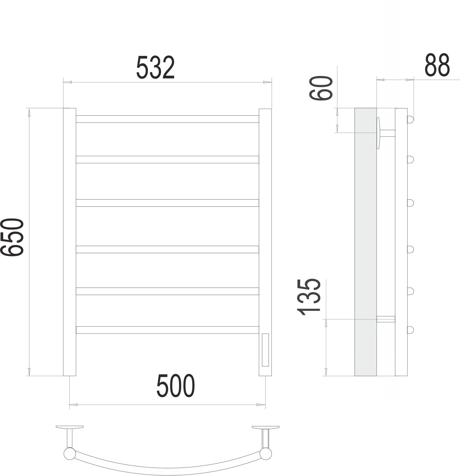 Полотенцесушитель электрический Terminus Классик П6 500x650