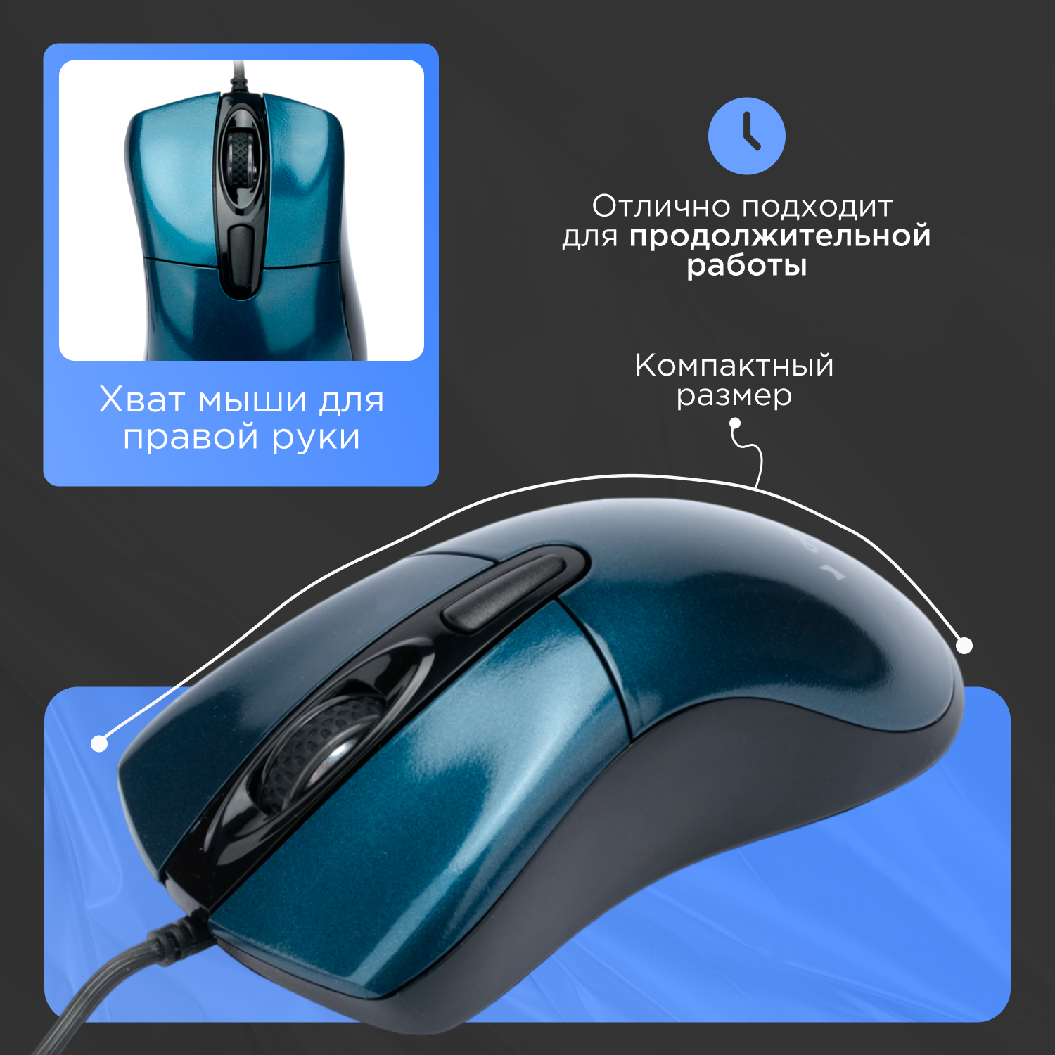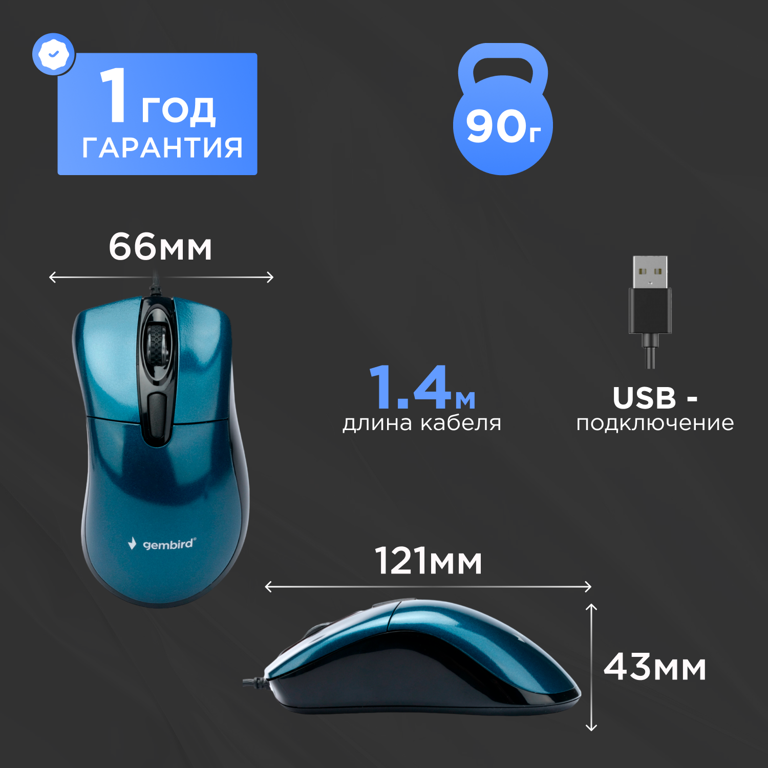 Мышь Gembird MOP-415-B, USB, синий, 3 кнопки+колесо-кнопка, 2400DPI кабель 1,4 м