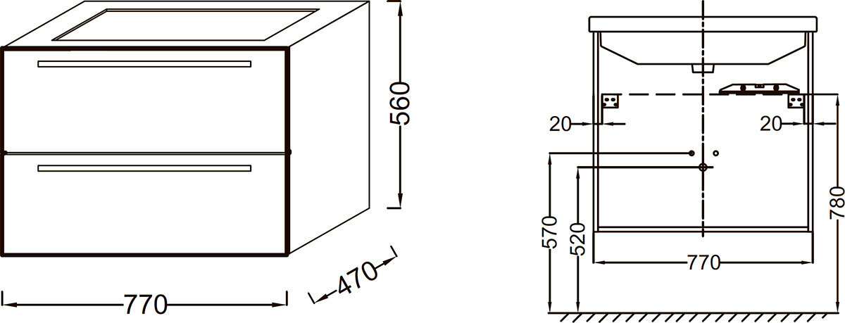 | Комплектация | 2 выдвижных ящика; без раковины и смесителя |