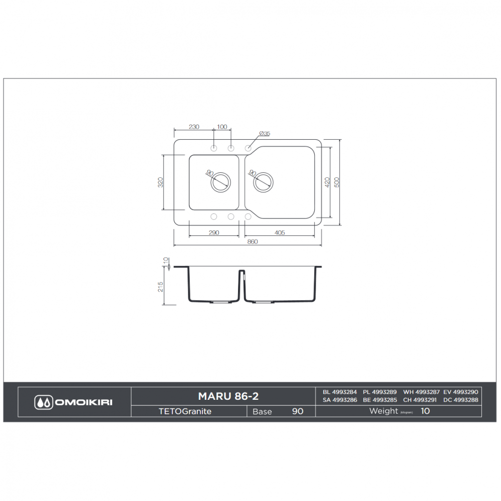 Мойка кухонная Omoikiri Maru 86-2-EV 4993290 Tetogranit, эверест OMOIKIRI MARU