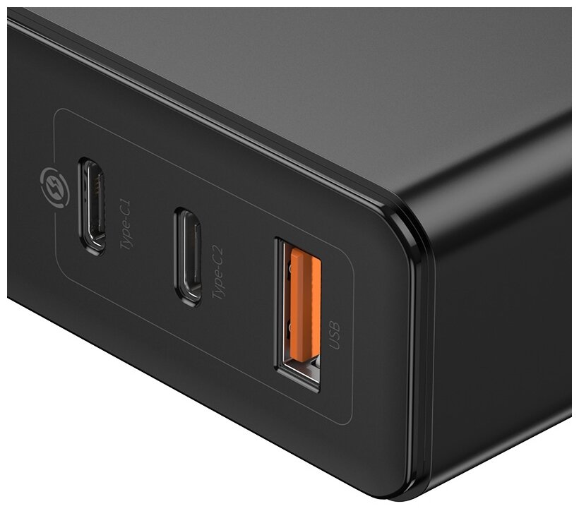 Baseus Сетевое зарядное устройство GaN Mini Quick Charger (CCGAN-J01) C+C+U + кабель Type-C-Type-C, 120 Вт, черный