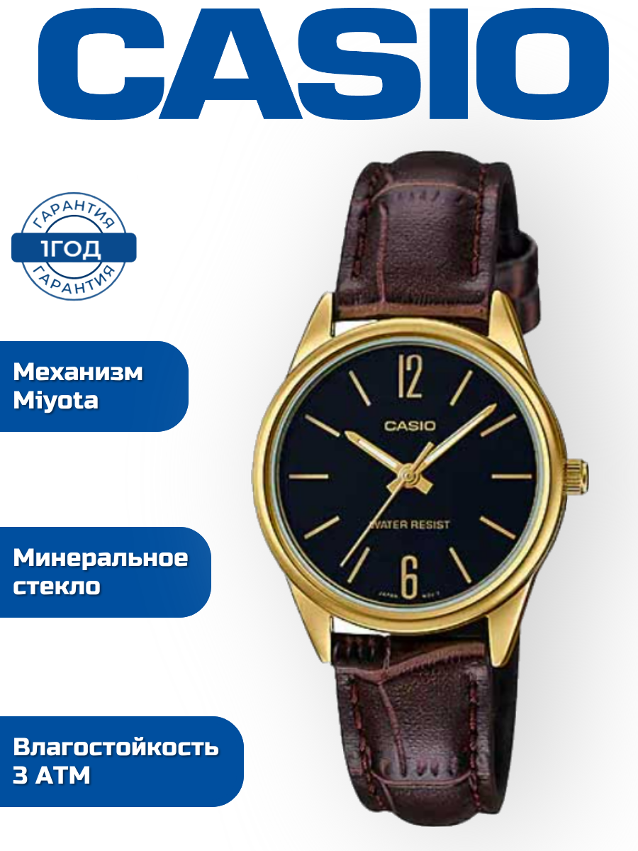 Наручные часы CASIO LTP-V005GL-1B, золотой, коричневый