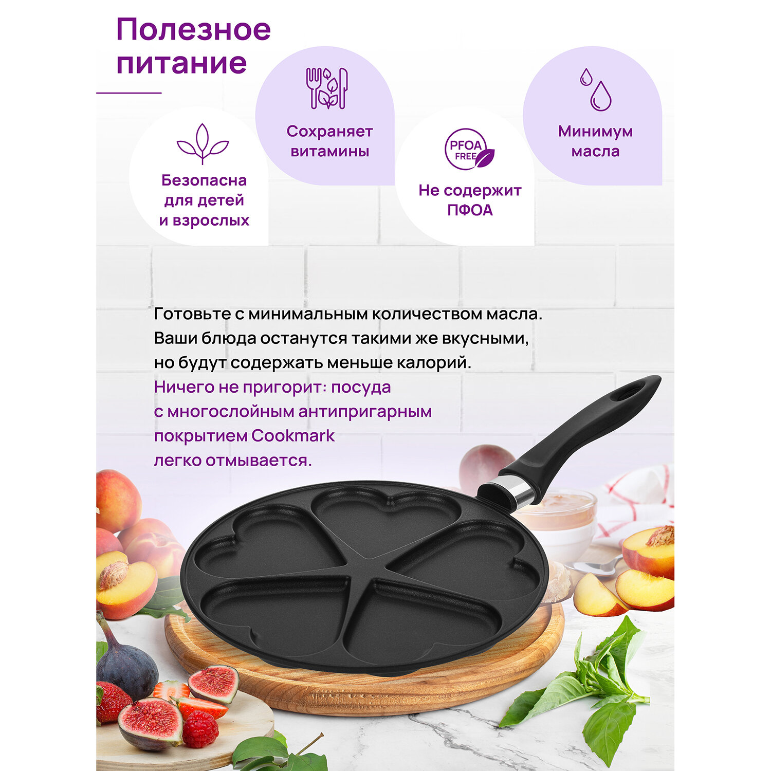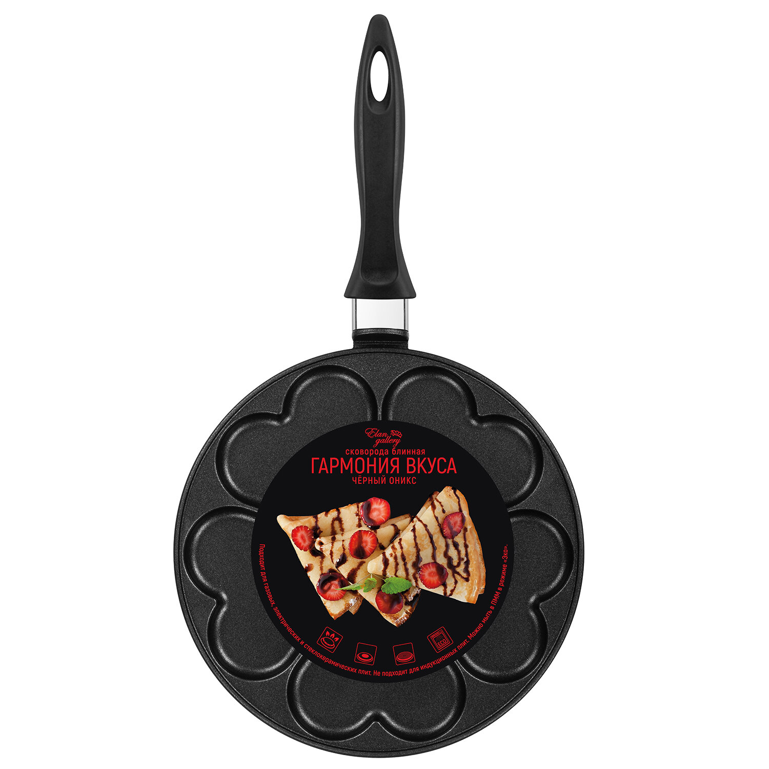 Сковорода для оладий 26 см Elan Gallery гармония вкуса Черный Оникс сердце, несъёмная ручка интересное: