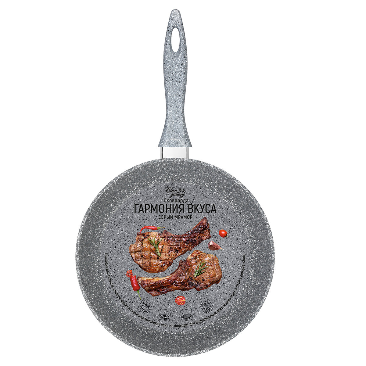 Сковорода глубокая 26 см Elan Gallery гармония вкуса Серый мрамор без крышки, несъёмная ручка интересное: