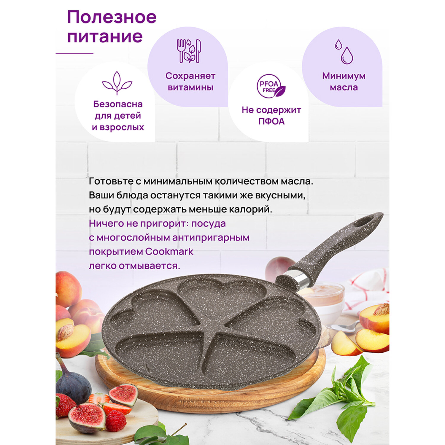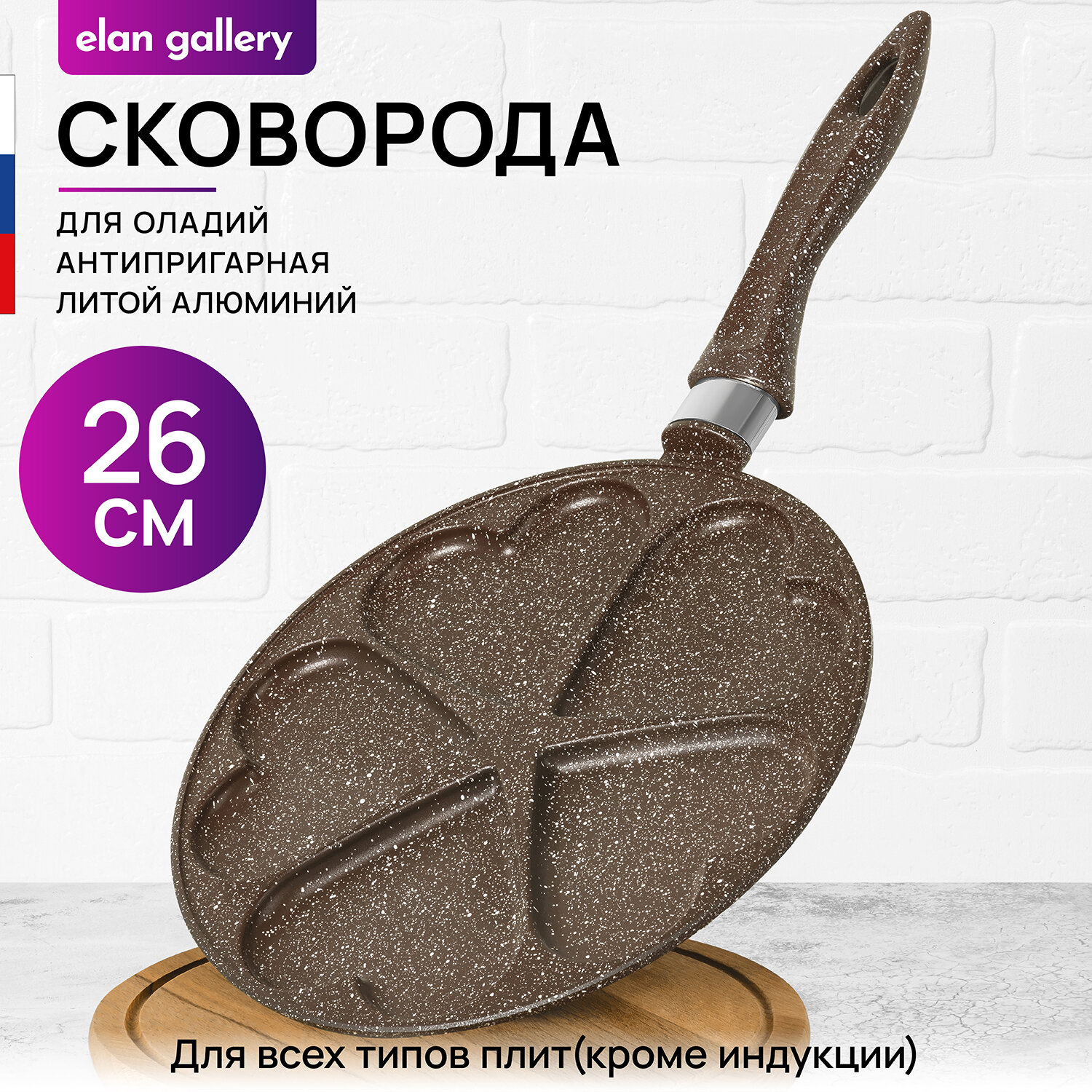 Сковорода для оладий 26 см Elan Gallery гармония вкуса Коричневый опал сердце, несъёмная ручка интересное: