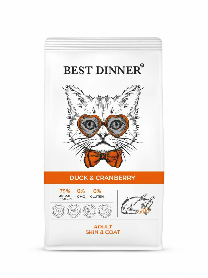 Best Dinner Adult Cat Duck & Cranberry сухой корм для взрослых кошек для ухода за кожей и шерстью с уткой и клюквой - 1,5 кг интересное: