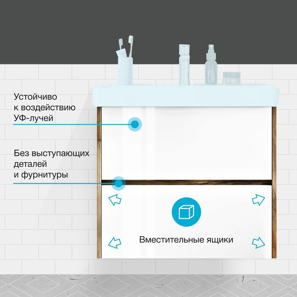 Тумба белый глянец/дуб рустикальный 68,2 см Акватон Сканди 1A251801SDZ90