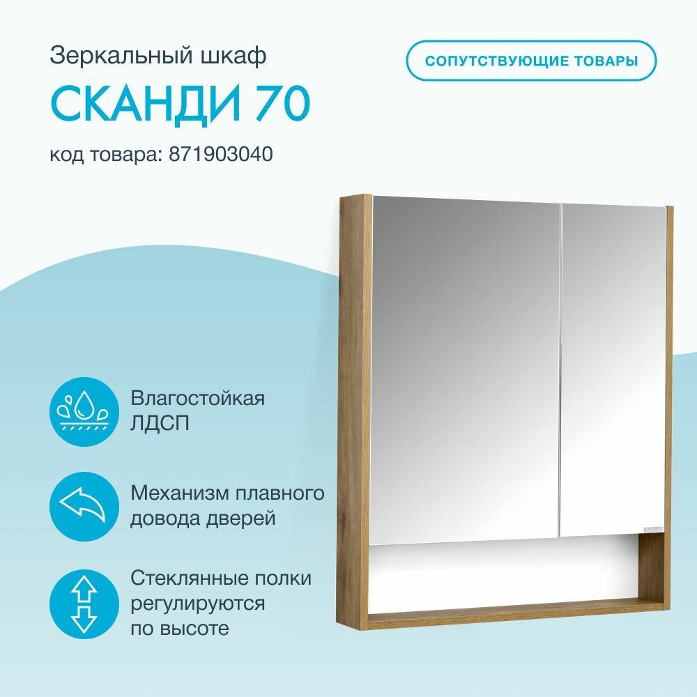 СохранитьТумба под раковину Акватон Сканди 70 белая/дуб рустикальный (1A251801SDZ90) интересное: