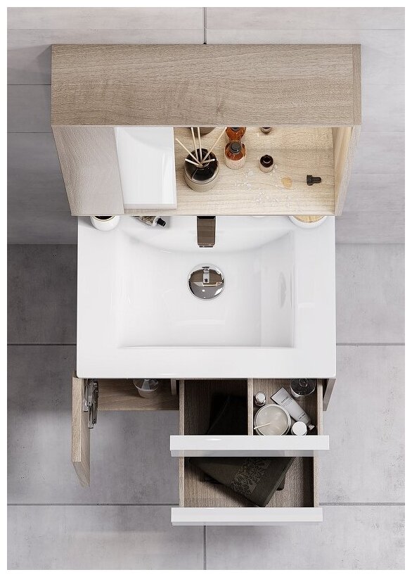Тумба под раковину AQUATON Бостон 742x460x550 подвесная, 2 ящ,1 дв, белый/дуб эврика 1A252601BN01